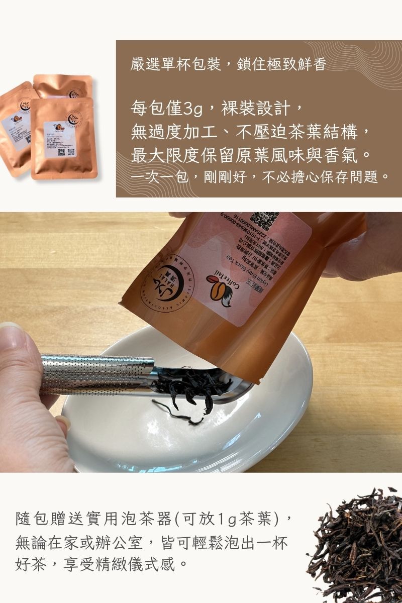 每包僅3g,裸裝設計,無過度加工、不壓迫茶葉結構,最大限度保留原葉風味與香氣。一次一包,剛剛好,不必擔心保存問題。
